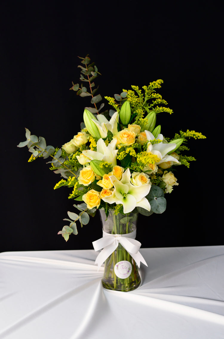 White lily and baby rose Vase