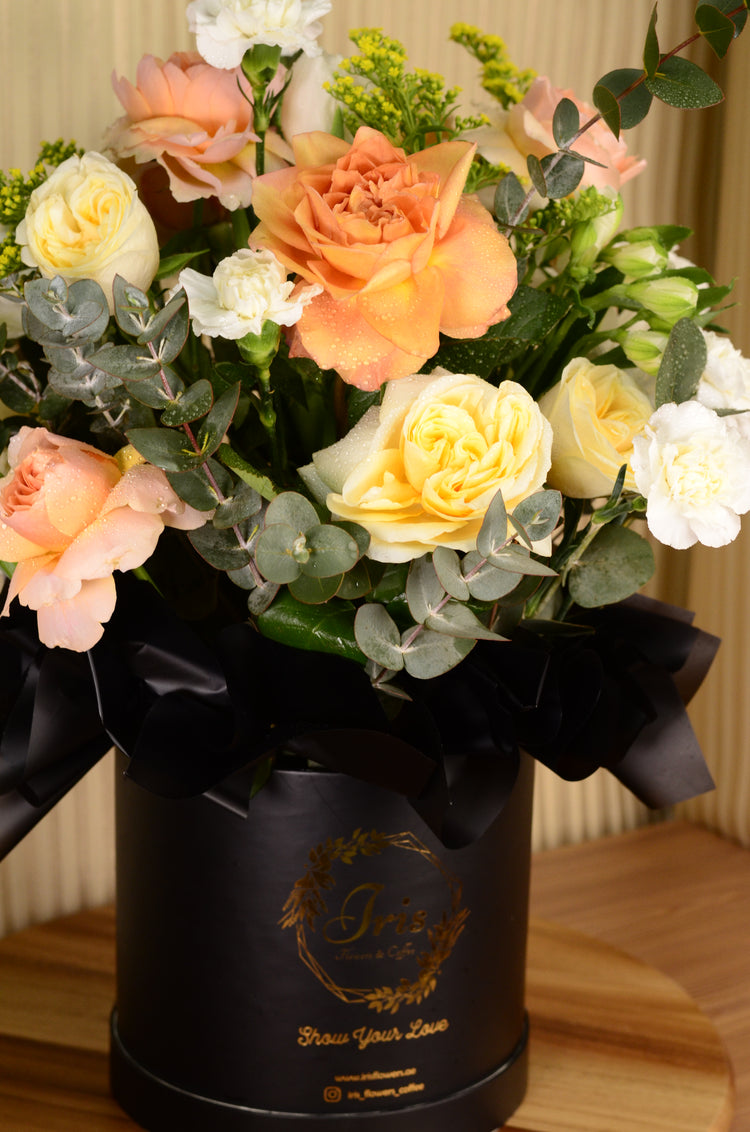 A flower box comes with a foam insert soaked in water. This helps to keep your flowers fresh and hydrated. When the foam starts to become dry, you simply add more water to keep your flowers fresh and hydrated. Keeping the foam moist will keep them fresh for upwards of a week.