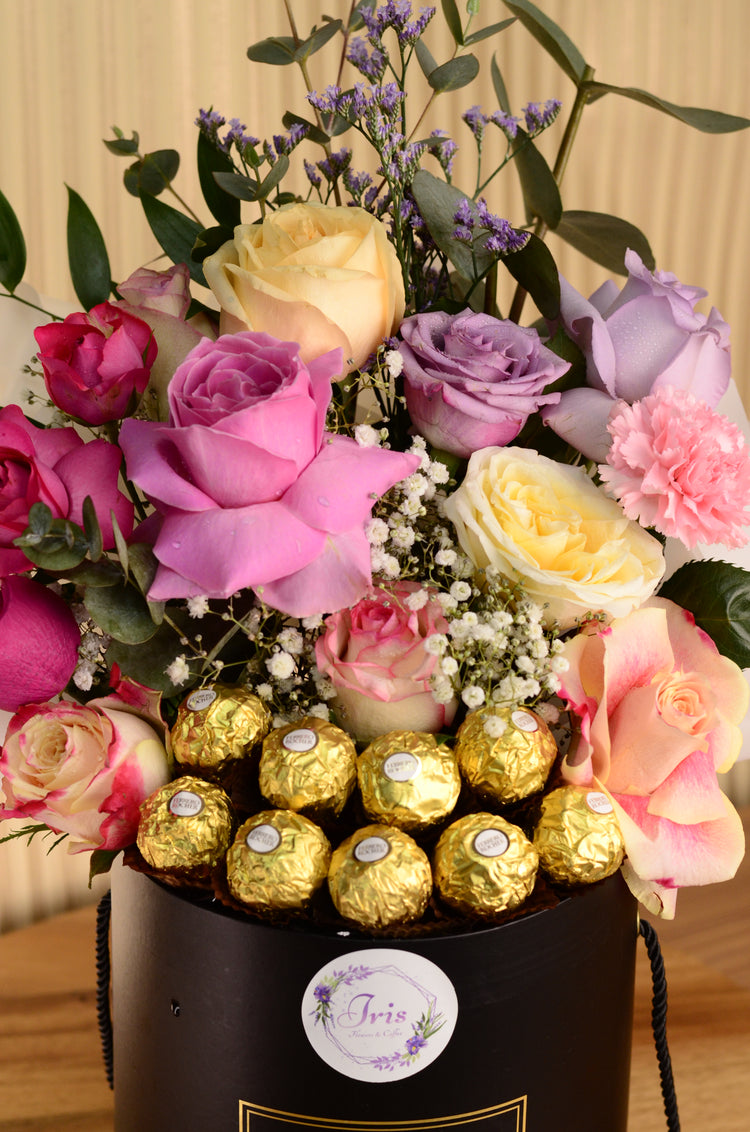 Pink flowers Box with chocolate