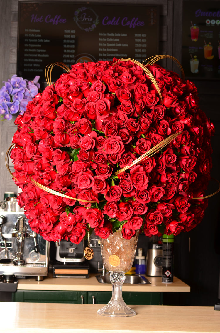 500 red rose flowers vase