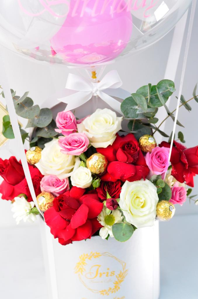 Red ,pink and white flowers box